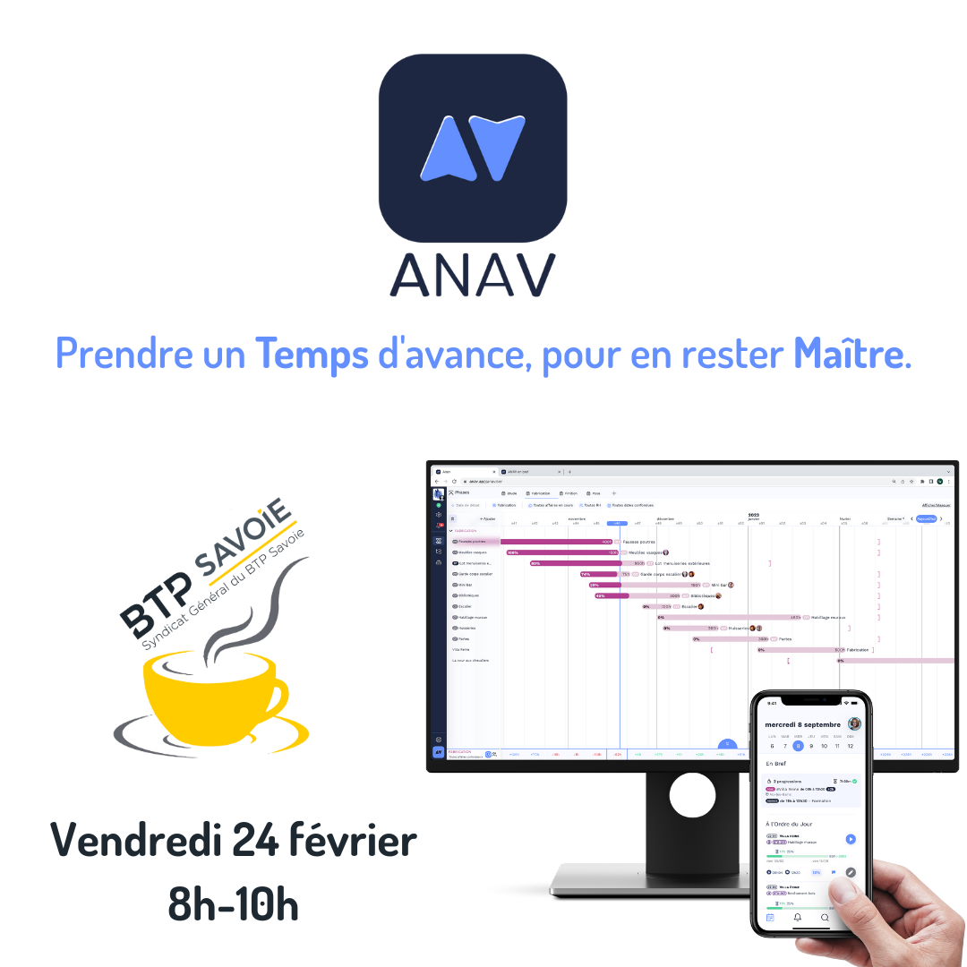 Pour cette nouvelle édition, nous aurons le plaisir de recevoir ANAV qui présentera son logiciel de gestion de projet BTP.