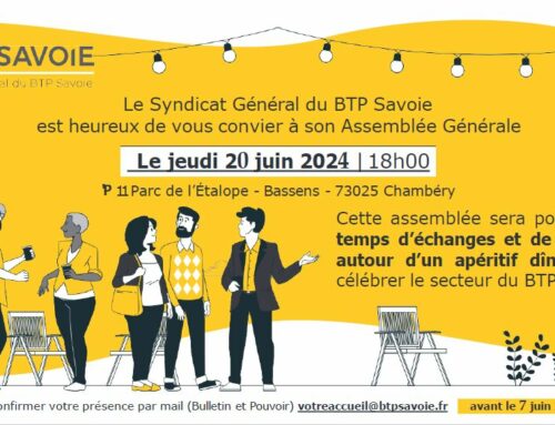 Rendez-vous le jeudi 17 octobre 2024 à partir de 18h00 dans les locaux du Syndicat Général du BTP Savoie avec au programme les interventions de :